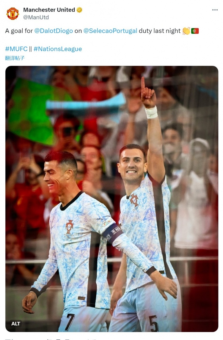 9月6日宣 曼联官方更新社媒动态,祝贺达洛特在葡萄牙队的比赛中取得进球。在北京时间今天凌晨进行的欧国联小