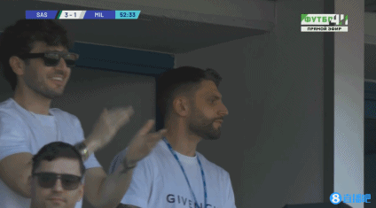 萨索洛一度3-1领先AC米兰,已因伤赛季报销的萨索洛核心贝拉尔迪在看台激情挥拳庆祝,并示意队友专注