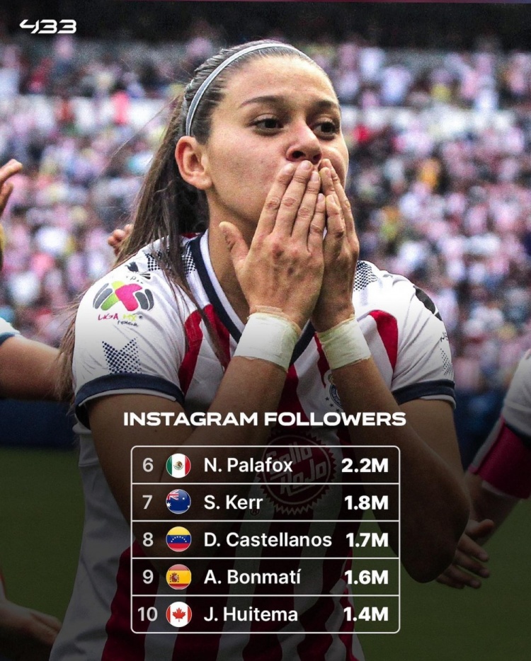 7月22日宣 433统计了女足球员在社媒平台Instagram上的粉丝数量前十,今夏从西汉姆女足加盟尤文女足的雷曼以1700万排名第一。
