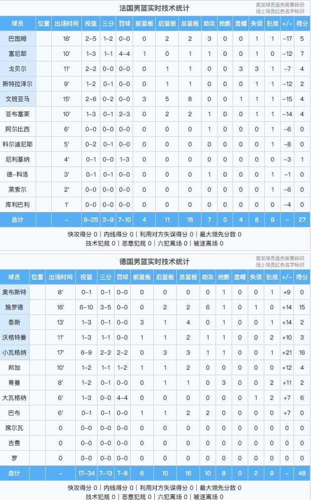 小黑+小瓦合砍31分!德国半场领先法国21分全场爆发漫天嘘声