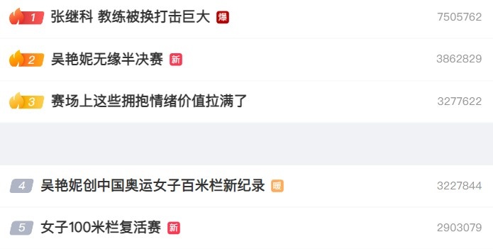 热度拉满微博热搜前五都和体育有关其中三个与吴艳妮相关