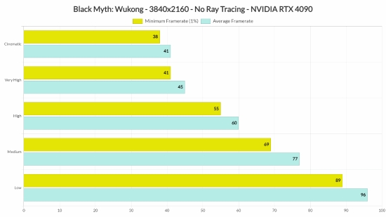 DSOGaming指出,《黑神话:悟空》对显卡的要求极高。在测试中,即使在720p分辨率下,NVIDIA GeForce RTX 4090显卡也几乎达到了其性能极限。尽管如此,在1080p分辨率和最高设置下,仅有RTX 4090能够稳定运行游戏并达到60帧的水平。