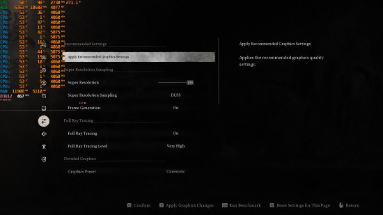 DSOGaming建议玩家可以通过使用DLSS 3超级分辨率、帧生成技术或降低图形设置来提升性能。以原生4K和高画质设置为例,RTX 4090能够接近60帧的表现,尽管有时会降至55帧,但VRR/G-Sync显示器可以帮助平滑这些掉帧问题。