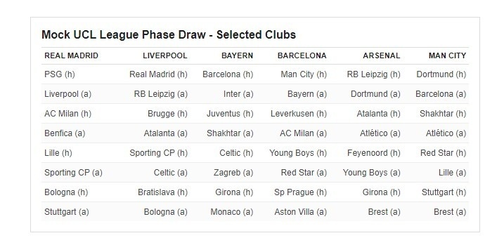 ESPN模拟欧冠六大豪门抽签:皇马遇巴黎利物浦,巴萨碰曼城拜仁