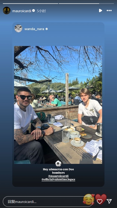 藕断丝连旺达晒照与伊卡尔迪共进午餐,伊卡尔迪转发: