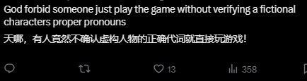 也有网友在评论区调侃“居然有人分不清虚构人物性别就玩游戏?”“我的笔记本是什么性别?”