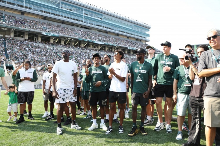 9月18日讯 近日勇士球星追梦回到母校密歇根州立大学参加周年活动。