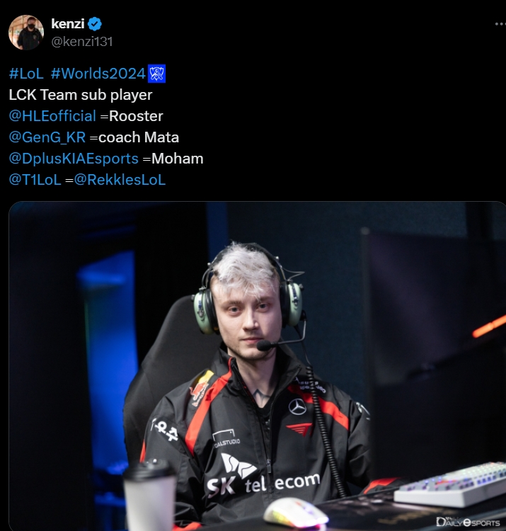 欧城也去世界赛了!Kenzi发布LCK各队替补:DK疑似让Kellin首发