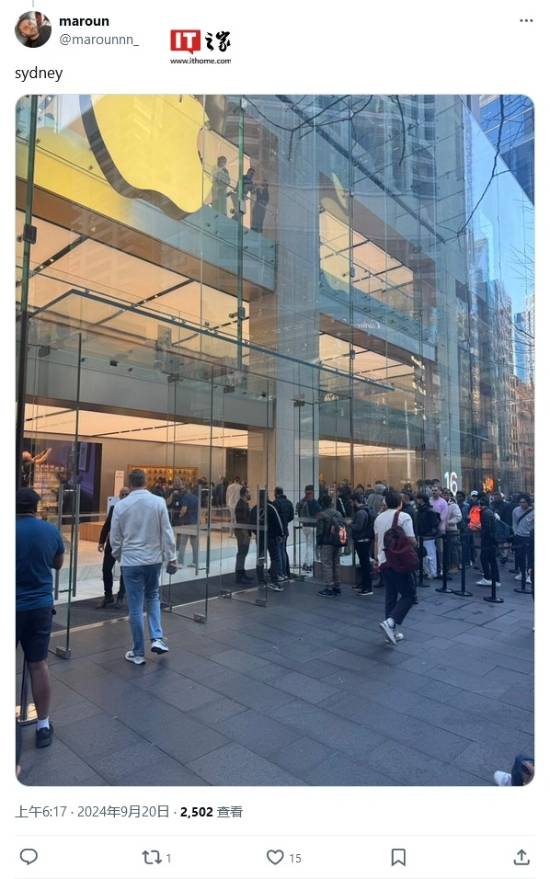 古尔曼在X平台邀请用户分享各地排队情况,Apple Store零售店门口排队的人数并不多。除了悉尼之外,美国第五大道、日本等国家和地区的排队人数都不多。