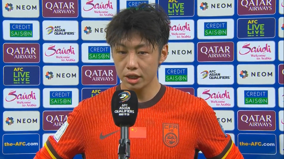 国足1-3日本赛后,本场首发出战徐皓阳接受场边采访。