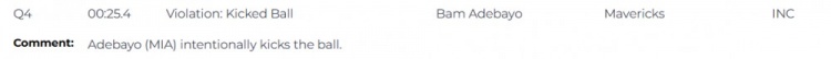 漏判1、比赛第四节最后25.4秒,阿德巴约脚踢球违例漏吹。