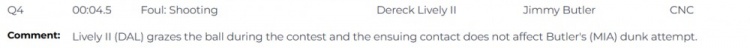 11月26日讯 昨日NBA常规赛,热火加时123-118战胜独行侠,NBA官方出具了本场比赛的裁判报告,本场比赛共出现1次漏判,比赛第四节巴特勒绝平扣篮没有被犯规!