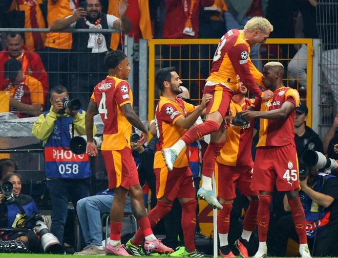 第30分钟,维尔茨在禁区右侧凌空抽射,打近角。门将注意力很集中,把球扑了出去。3分钟后,奥斯梅恩前插,在禁区外看到门将站位有点靠前,直接挑射,结果高度不够,门将把球没收。半场结束,利物浦0-1加拉塔萨雷。