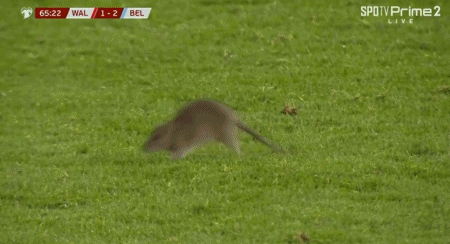 小插曲,威尔士对比利时的世预赛中有老鼠入场短暂干扰了比赛