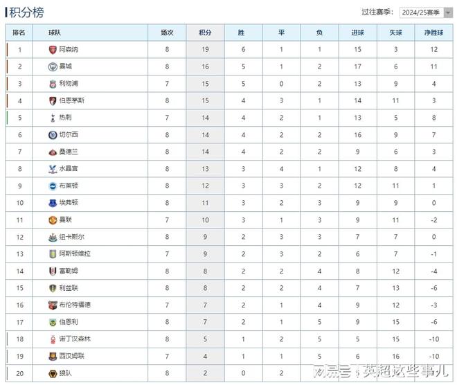 - 英超 | 英超最新积分榜:阿森纳客胜3分领跑,曼城3连胜攀升第2!