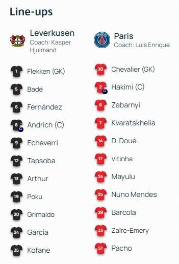 - 欧冠 | 巴黎客战勒沃库森:巴尔科拉搭档杜埃,KK、维蒂尼亚首发