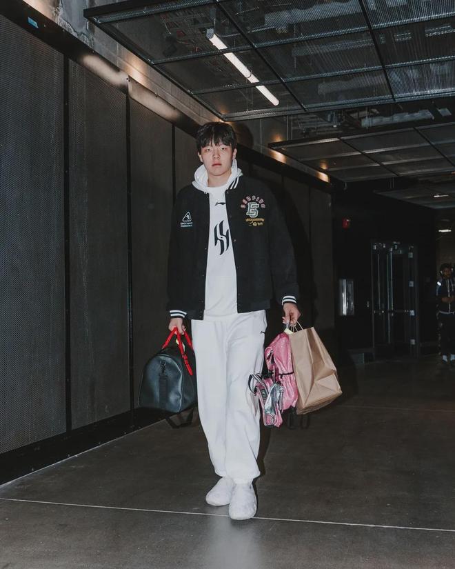 杨瀚森季前赛时身穿个人LOGO服装进场