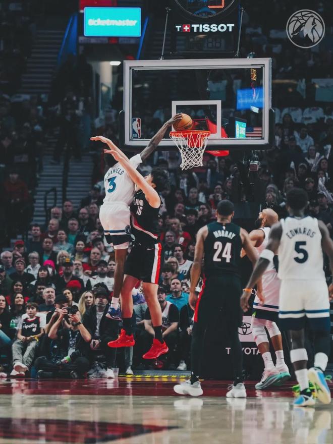 当然,在这场比赛中杨瀚森也暴露了自己的缺点——面对NBA运动员的强大体格,杨瀚森仍然需要提高自己的对抗和体能;因为刚刚正式踏入NBA赛场,杨瀚森在比赛中送上了一次防守3秒违例;面对过去两个赛季闯入西决的森林狼,作为队伍最后的护框者,杨瀚森因为补防被丹尼尔斯隔扣成为了NBA又一幅“经典名画”。
