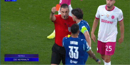 “今晚裁判的判罚简直不合格。没什么可说的,我们什么都做不了。埃莫森的第一张黄牌简直离谱,他的手根本没法控制(手球)……”