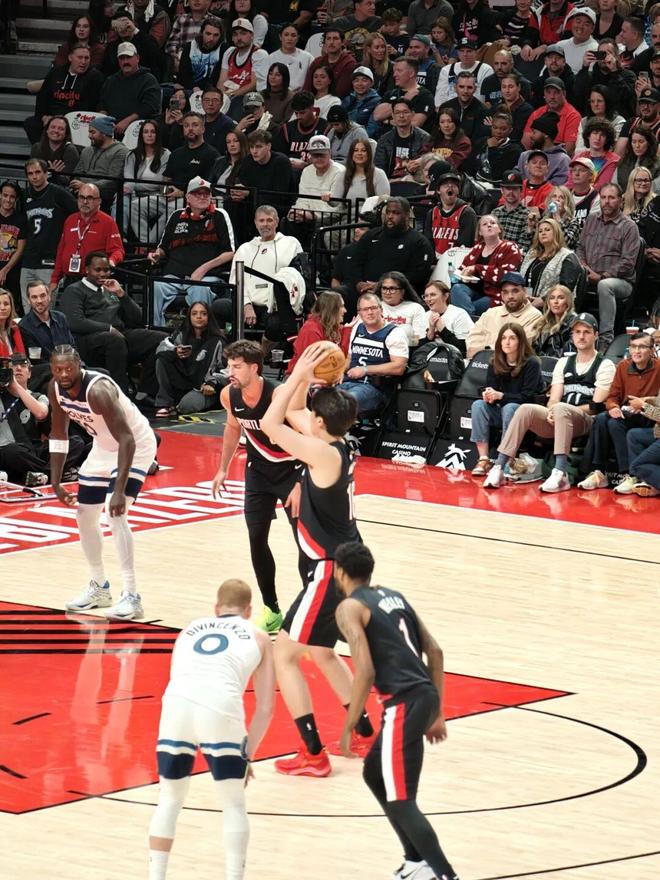 我还有一个朋友,这个是真朋友,他为了看杨瀚森的NBA常规赛首秀,亲自前往波特兰,在现场观战开拓者vs森林狼的比赛。