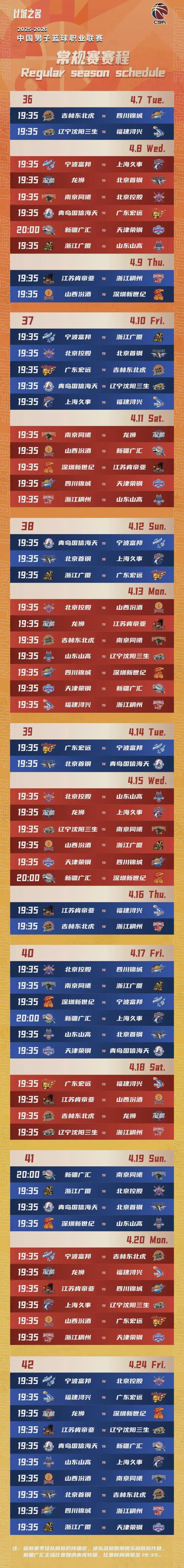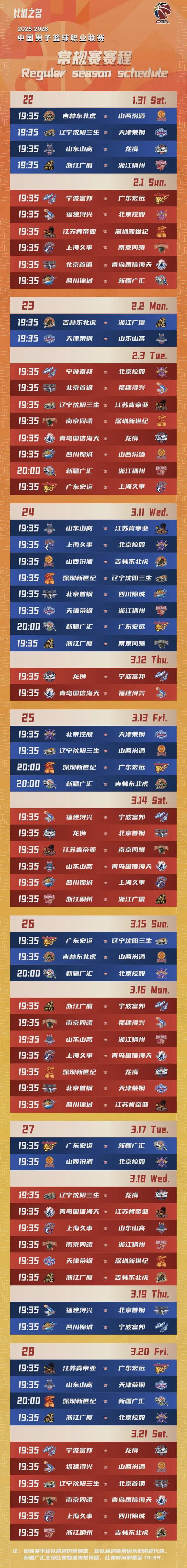 - CBA | 新赛季CBA常规赛赛程出炉,请一键收藏!