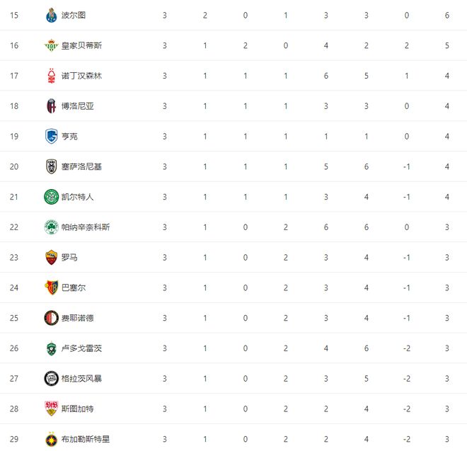 北京时间10月24号凌晨,欧联杯战火重燃,多支五大联赛劲旅悉数登场,结果多支英超球队大爆冷门,仅存诺丁汉森林新帅戴奇首秀开门红,维拉被逆转1-2输给前进之鹰,水晶宫0-1不敌AEK拉纳卡,诺丁汉森林2-0波尔图,罗马1-2不敌比尔森胜利,皇家贝蒂斯0-0比甲球队亨克,欧联积分榜乱成一锅粥。