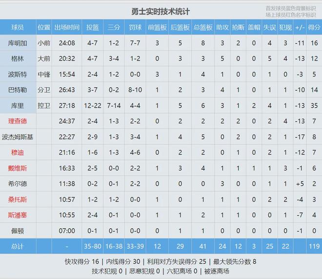 库里空砍35分6板3助2帽、库明加16分8板3助2断、巴特勒14分3板4助!开拓者多点开花:阿夫迪亚26分5板6助、格兰特22分、卡马拉19分7板3断、夏普17分4板、克林根14分8板。最后看看数据,说说你的心情: