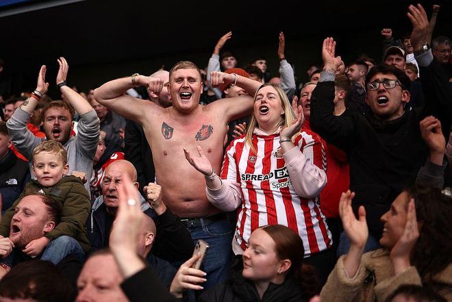 看台上的桑德兰球迷欣喜若狂。