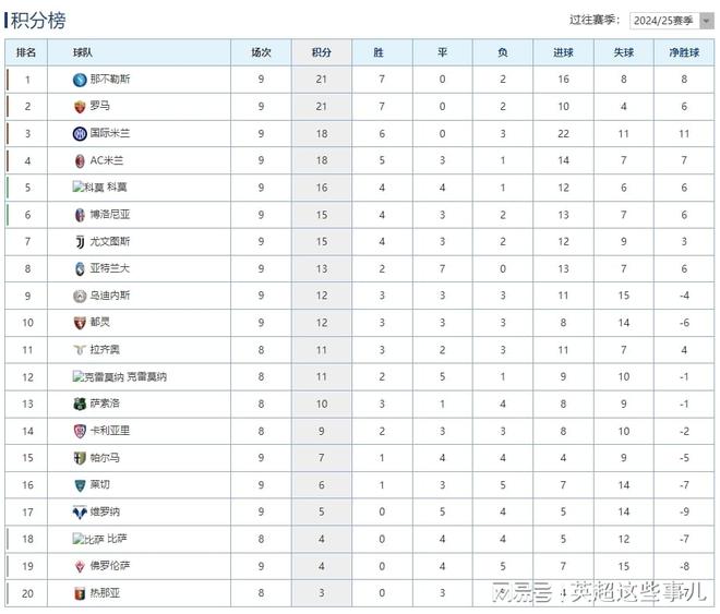 - 意甲 | 意甲最新积分榜:国米3球完胜攀升第3,尤文终结8轮不胜!