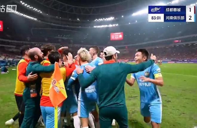 最终,成都蓉城主场1-2被河南队逆转,积分停滞在59分,落后海港4分,在联赛仅剩一轮的情况下,退出冠军争夺。本赛季成都蓉城在中超、足协杯与河南3次交手,均被对手击败,中超首回合较量,成都蓉城客场2-3不敌对手,足协杯半决赛120分钟0-0,点球大战3-4落败。