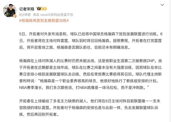 - NBA | 再下放!再召回!杨瀚森连续两场DNP释放3信号,球迷:太扎心了