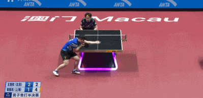 但是王楚钦在发球环节给樊振东极大压力——1比3,王楚钦发了一个台角保护的半出台,樊振东一吊,被早等在位置的王楚钦一个倒地爆冲。