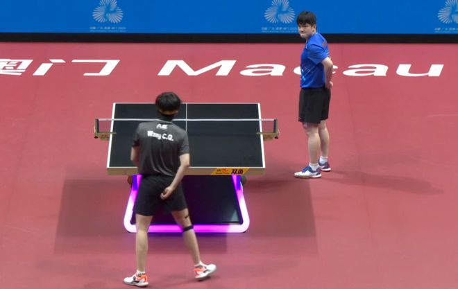 于是这球晃到王楚钦,侧身失误了。