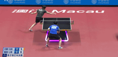 局分打平,但这时候场面已经开始向樊振东倾斜。他高抛的变化开始给王楚钦压力,加上王楚钦只用一套发球,到现在变化都抖搂差不多了,前三板的形势此消彼长,让樊振东的战术更单纯:尽量拧起来打相持——然后就是一波开局6-2领先。王楚钦追到6-4,樊振东叫了暂停;之后到了7-5,樊振东这个高抛又出场了:这次是个死转直线下旋。