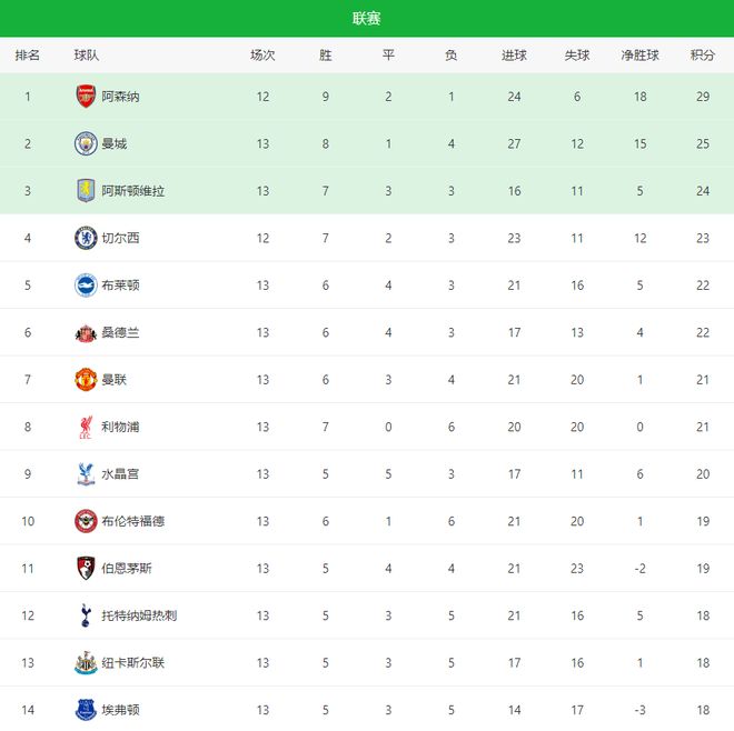 - 英超 | 英超悲喜夜:曼城30距榜首2分阿森纳12被绝杀利物浦33被绝平