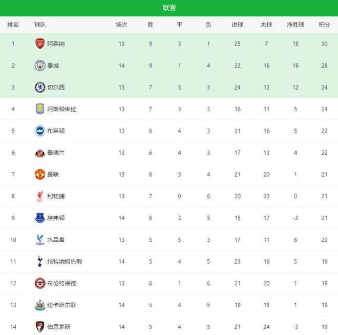 - 英超 | 英超悲喜夜:曼城30距榜首2分阿森纳12被绝杀利物浦33被绝平