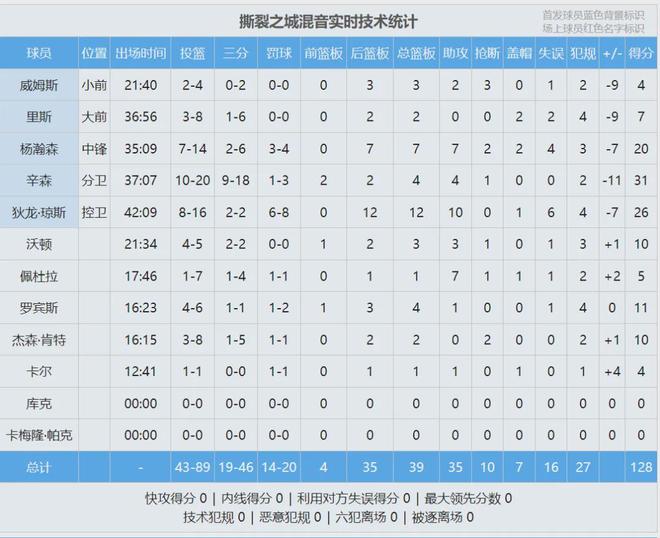 杨瀚森上场时间和助攻数,均是生涯最高,体能有所进步。快船前场板9比4碾压混音,小杨的后场篮板保护还是要注意。最后看看数据: