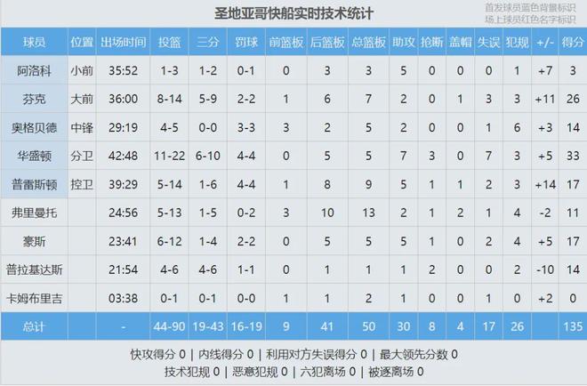 杨瀚森上半场出战14分29秒,9投6中 ,三分3中2,罚球1中1,砍下15分4板2助1断,得分和正负值(+7)均是全队最高。第三节杨瀚森仅有2次出手,在场上存在感不如前两节。对手三分投疯了,三节战罢,快船100-94领先混音。