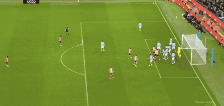 而曼城的防守依旧松散,第15分钟,曼城后腰和肋部都无人防守,勒费的远射击中了边网。