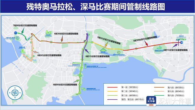 6时30分开始,对深南大道(沙河西路-宝安大道段东往西方向)、宝安大道(深南大道-新安西路段东往西方向)、宝安大道(新安西路-湖滨西路段西往东方向)、湖滨西路(梦海大道-宝安大道段东西双方向)实行临时管控;