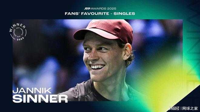 辛纳不仅在赛场上持续取胜,也在不断赢得球迷的心。这位意大利球星在2025赛季斩获6个巡回赛级别冠军,并连续第三年荣获ATP年度奖项中的“最受球迷欢迎单打球员奖”。