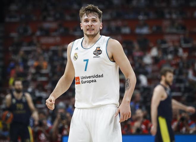 2018年5月,东契奇随皇家马德里队夺得篮球欧冠冠军,随后参加当年NBA选秀(视觉中国)