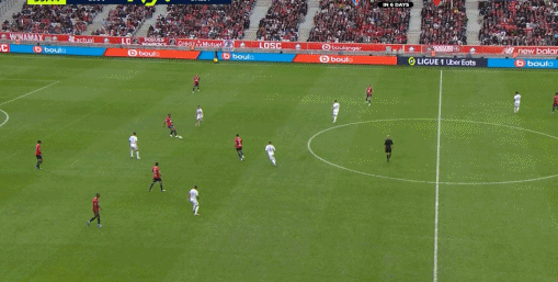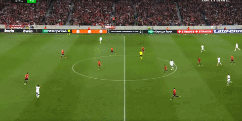 当时他在里尔主打四后卫体系里的右中卫,和三后卫的边中卫相比,位置稍微谨慎一点是正确的,但对手已经打到面前的进攻,约罗还是明显偏缩: