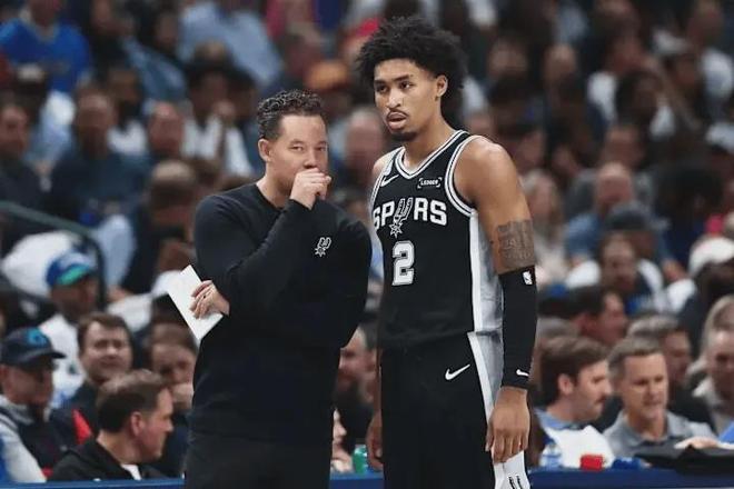 防守端马刺队有文班亚马这个BUG级的联盟最佳防守球员,所以球队防守体系非常容易建立,目前球队防守效率113.1排名全联盟第6,队内所有球员在这个体系中都有防守加成,简单点说,即便第一层外线防守被突破,对手进入内线面对的也是恐怖的文班亚马封盖干扰,马刺队外线防守球员只需紧跟进攻人,不给投篮空间,甚至可以故意把他驱赶到文班亚马的防守覆盖区遭受打击,防守压力相比其他球队减少一个级别.