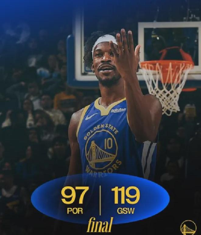 说回比赛,没有阿夫迪亚的开拓者,实力断崖式下滑,客场面对勇士毫无还手之力,97-119大比分落败。