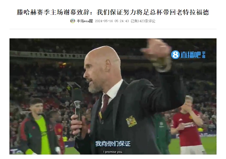 英超第34轮补赛曼联3-2力克纽卡。这是红魔本赛季英超最后一个主场比赛。赛后滕哈赫说:“我向你们保证,这些球员会竭尽全力赢得奖杯,把冠军带回老特拉福德!”